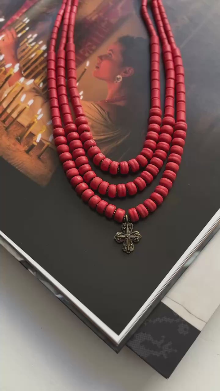 Red Necklace Ukrainian Traditional Jewelry Ethnic ceramics Multirow Necklace Gift for Her
